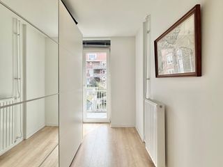 This unfurnished 60-square-meter apartment is located on the first floor on the leafy Hunzestraat. You enter into a living room featuring a neat woode…