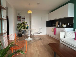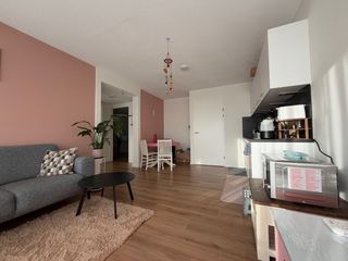 Available from March 1st, this bright apartment is located on the first floor of the 'De Golfslag' building at Smedingplein 67. You enter through …
