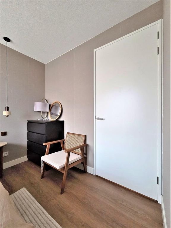 This two-room apartment of approximately 65 square meters is located on the seventeenth floor of the BinnenDok complex on the NDSM wharf. From this he…