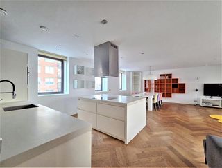 On the fourth floor of the Oostenburgermiddenstraat, you will find this modern two-bedroom apartment. The property is easily accessible by elevator an…
