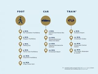 Living in Hoofddorp means opting for convenience and space. You live centrally in the Randstad, but with a calmer, more manageable feel. Its biggest asset, of course, is its accessibility. By train, you'll be at Schiphol within a few minutes and in the heart of Amsterdam or Leiden in about 20 minutes. You're also well-connected by car: the A4, A5, and A9 motorways are right around the corner. This makes Hoofddorp ideal if you travel a lot for work or study.