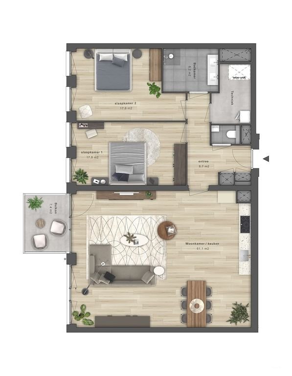 Located on the sixth floor of the modern 'De Ananas' complex, you will find this spacious 134-square-meter corner apartment. Thanks to its corner posi…