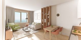 On the second floor of the Narita complex, you will find this 54-square-meter two-bedroom apartment offering city views. You enter into the living roo…