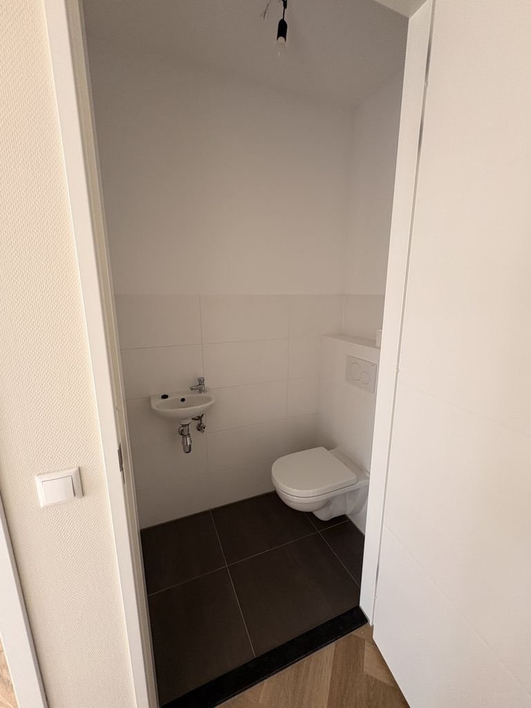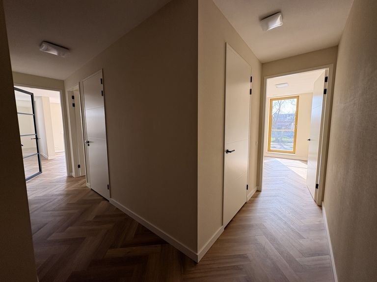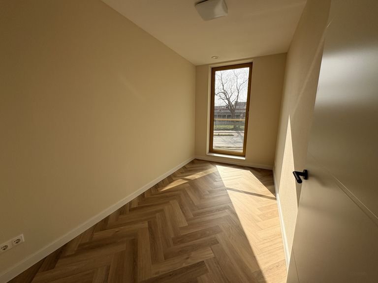 This 59-square-meter apartment is located on the first floor of the newly built 'Het Schippershof' complex on the outskirts of Veldhoven. You enter a home that has been finished to a high, practical standard, featuring wood-look PVC flooring and sleek walls. Since window coverings are already installed, that is one less thing for you to worry about. The open-plan kitchen comes fully equipped with built-in appliances, including an induction hob, dishwasher, fridge with freezer compartment, and a combination microwave oven.