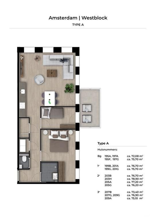 Op de eerste verdieping van het complex West Block aan de Naritaweg vind je dit appartement van 74 vierkante meter. Je stapt hier binnen in een woning…