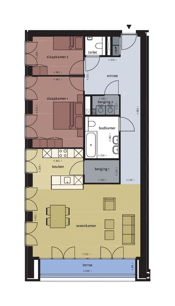 Op de tweede verdieping van het complex Narita vind je dit driekamerappartement van 54 vierkante meter met uitzicht over de stad. Je komt binnen in de…