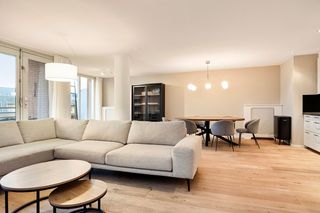 Dit gemeubileerde appartement van 119 vierkante meter ligt op de negende verdieping van een opvallend gebouw in de Rivierenbuurt, vlak bij het centraa…