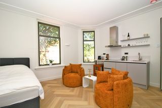Deze gemeubileerde studio ligt direct aan de Oude Herengracht in het centrum van Leiden. Het gebouw stamt uit 1881, wat goed past bij de authentieke s…