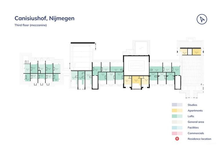 Compacte woonruimtes voor alleenstaanden of starters, verspreid door de stad.