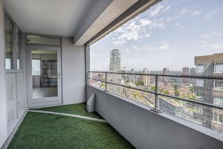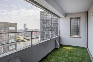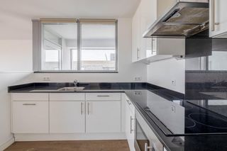 Op de 34e verdieping van het complex De Hoge Heren vind je dit driekamerappartement van 102 vierkante meter. Vanuit de woonkamer en vanaf het balk…