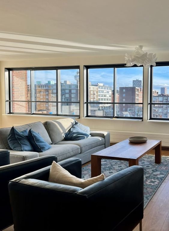 Dit gemeubileerde appartement van 108 vierkante meter ligt in de Coolhaven Tower in het Nieuwe Westen van Rotterdam. Je komt binnen in een lichte woon…