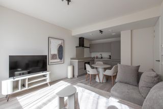 Dit appartement met twee slaapkamers ligt aan de Groenendaal in de Rotterdamse Stadsdriehoek, letterlijk boven een supermarkt en een drogist.