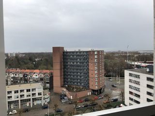 Dit gemeubileerde appartement van 83 vierkante meter ligt op de zevende en tevens bovenste verdieping aan de Kruiskade in de wijk Cool. Je kijkt vanui…