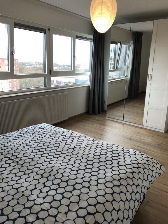 Dit gemeubileerde hoekappartement van 67 vierkante meter ligt op de 17e verdieping van het Calypso-gebouw aan het Kruisplein in Rotterdam. Omdat je ho…