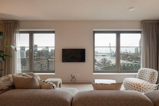 Dit appartement van 111 vierkante meter ligt op de negende verdieping aan de Oranjeboomstraat in Rotterdam. Je loopt hier een volledig gemeubileer…