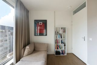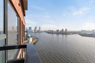 Dit appartement van 112 vierkante meter vind je op de zevende verdieping van The CoolTower, midden in Rotterdam. Door de ramen van vloer tot plafond h…