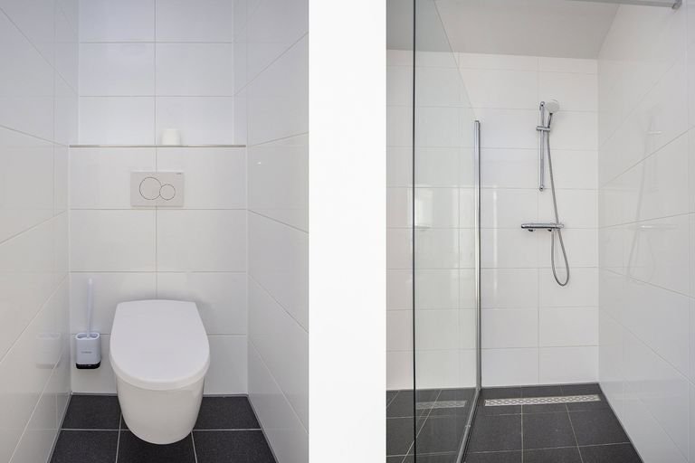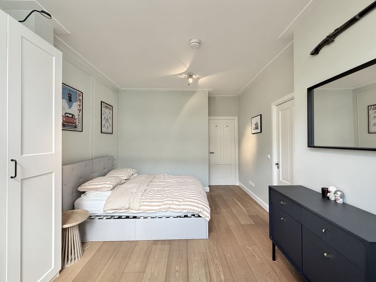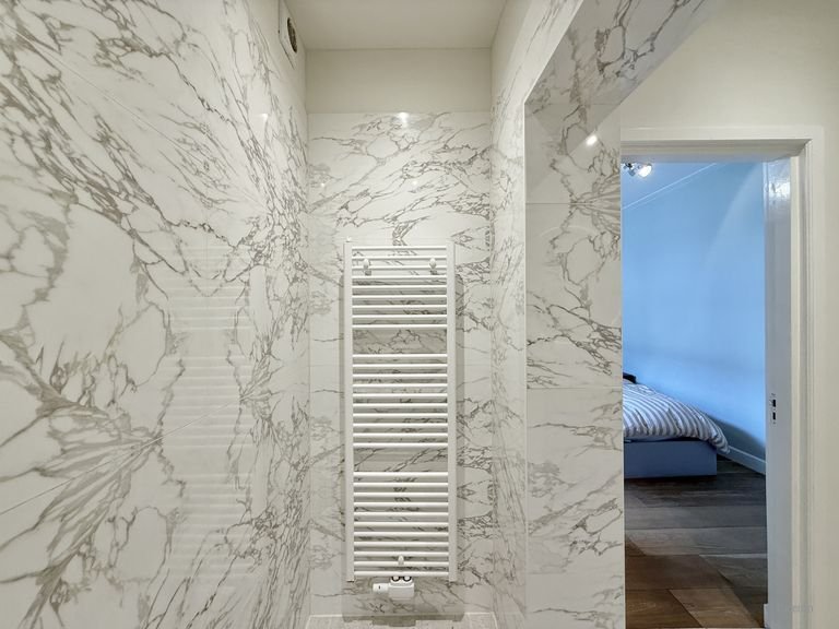 Slapen doe je aan de rustige achterkant, waar je twee kamers vindt van 17 en 10 vierkante meter. Vanaf hier stap je direct het balkon op, dat op het westen ligt voor de zon in de namiddag. De badkamer heeft een fijne regendouche en een dubbele wastafel, en het…