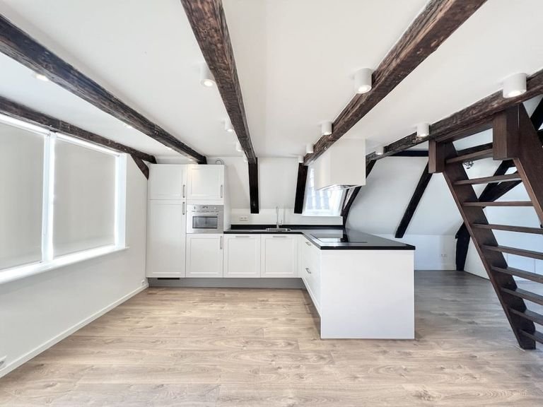 De woonkamer voelt licht aan en sluit aan op een moderne open keuken. Je hebt hier de beschikking over alle nodige inbouwapparatuur, zoals een…