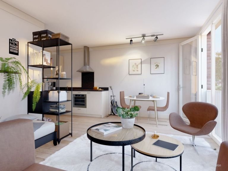 Op de zesde verdieping van het complex GO070 aan de Laakweg ligt deze studio van 23 vierkante meter. Het gebouw uit 2020 is nog zo goed als nieuw en dat merk je aan de moderne uitstraling. Omdat de woning gestoffeerd wordt opgeleverd, liggen er al vloeren en hangt er raambekleding. Je hoeft dus alleen je eigen meubels nog mee te nemen om er je eigen plek van te maken. In de keuken vind je alles wat je nodig hebt om direct te koken, inclusief een kookplaat, koelkast en vriezer.