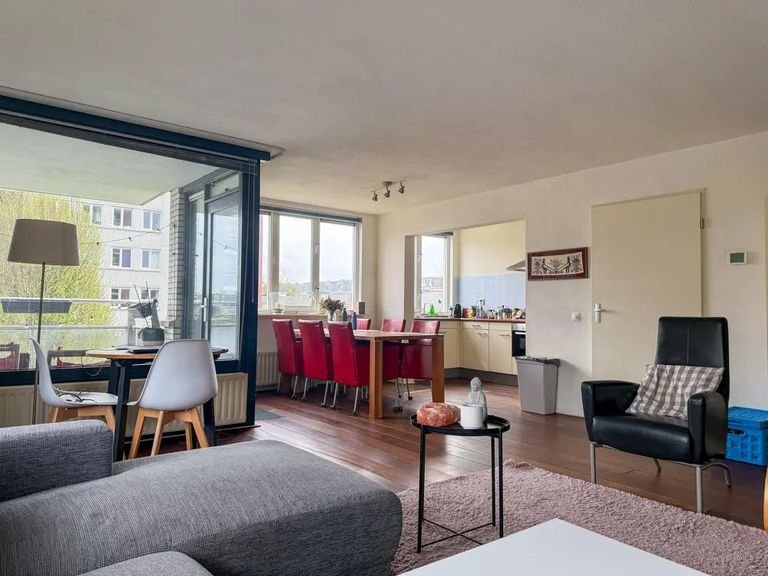 Op de tweede verdieping aan de Thorbeckelaan vind je dit ruime appartement van 90 vierkante meter. Je woont hier in de wijk Helpman, net ten zuiden van het centrum van Groningen. Je komt binnen in een grote hal die toegang geeft tot de lichte woonkamer. Omdat de woning gemeubileerd is, hoef je zelf niet te sjouwen met meubels. De aparte keuken is modern en compleet uitgerust met een gaskookplaat, vaatwasser, oven, magnetron en een koelkast met vriezer. Zowel via de woonkamer als de keuken stap je zo het balkon op.