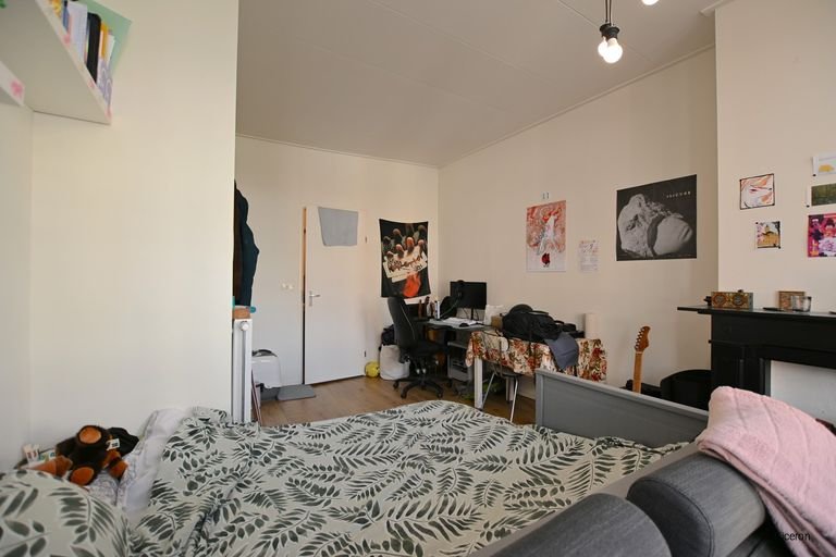 Via de gedeelde entree ga je naar boven, waar je direct je gecombineerde woon- en slaapkamer met ope…