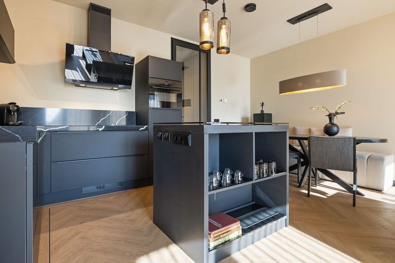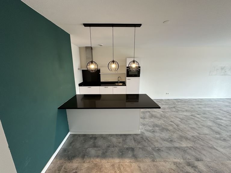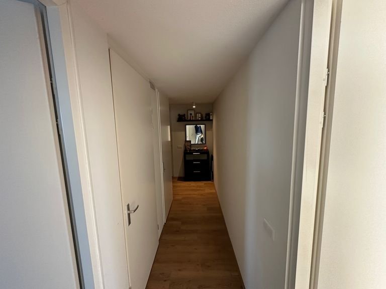 Via de entree met intercom loop je de trap op naar de woning. De hal verbindt alle kamers met elkaar. De woonkamer is met circa 40 vierkante meter opvallend groot en voelt door de br…