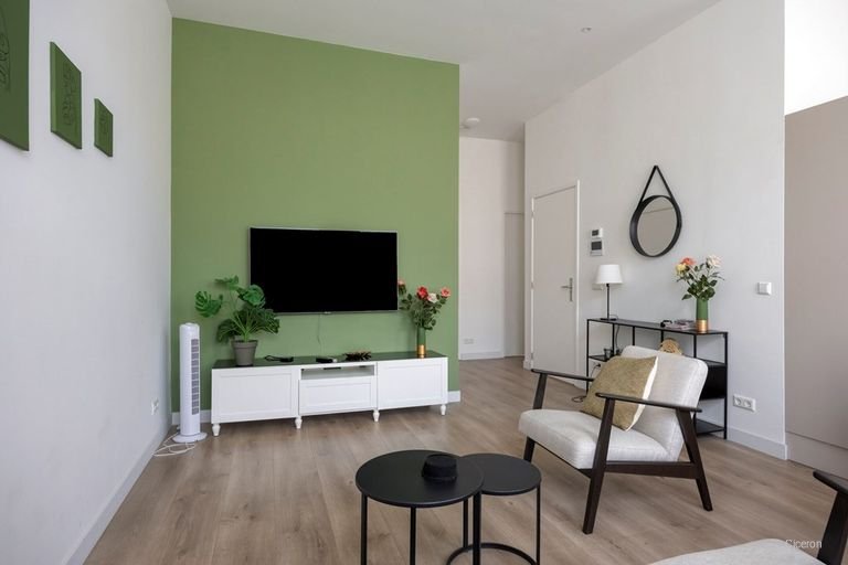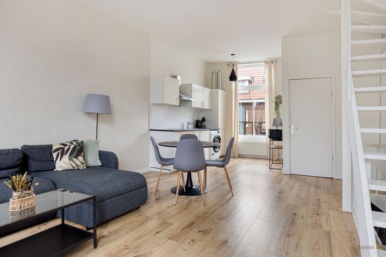 De indeling is praktisch en logisch opgezet. De lichte woonkamer staat in open verbinding met de keuken, die is voorz…