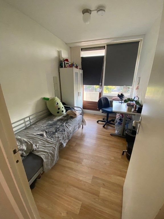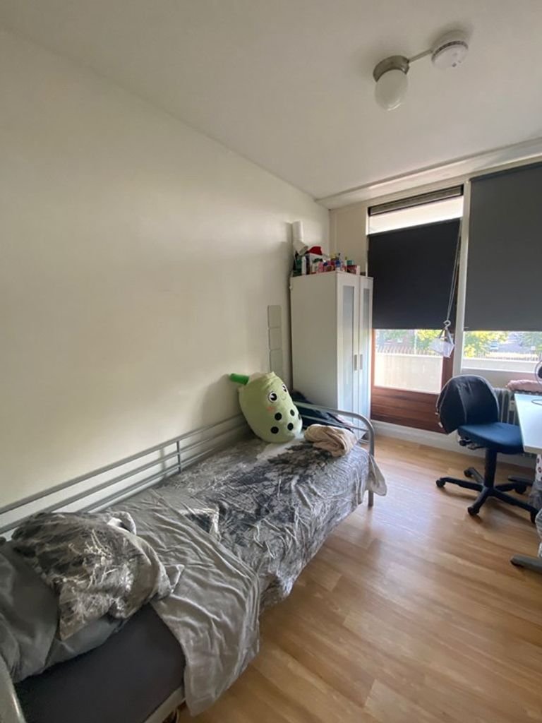 Deze kamer van ongeveer 20 vierkante meter ligt op de eerste verdieping aan de achterzijde van een pand in de Looierstraat. Je krijgt hier net een nieuwe laminaatvloer, dus dat scheelt weer klussen bij het verhuizen. Wat deze plek echt fijn maakt, zijn de openslaande deuren. Die zorgen voor veel daglicht en geven je direct toegang tot het gezamenlijke balkon. Er zit ook een inbouwkast in de kamer, wat handig is om je ruimte optimaal te benutten zonder grote kasten te hoeven slepen.